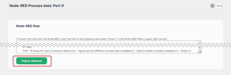 Click on the “Copy to clipboard” button to copy the content of the box (you will need it in the Node-RED environment).
