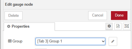 The upper output of the PDV1 is the actual value, the other two outputs are Min and Max values. The gauge needs to be assigned to a dashboard group to be visible in the dashboard. To use the previously created dashboard, select the following:
