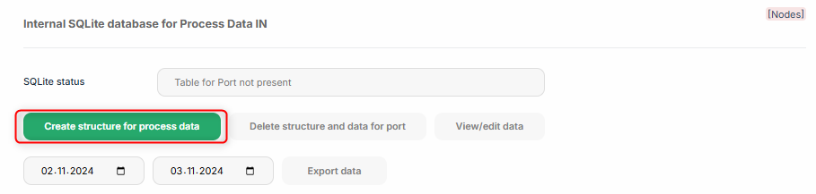 First the structure for the process data needs to be created in the internal SQLite database. This can be easily done over the port page in the process data section: