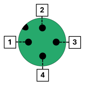 The Pinebox has four ports that can connect to IO-Link compatible (SDCI) devices. The connection is established via a 4-pin M12 (female) connector with the follwing pin assignments (as per connector on the Pinebox):
