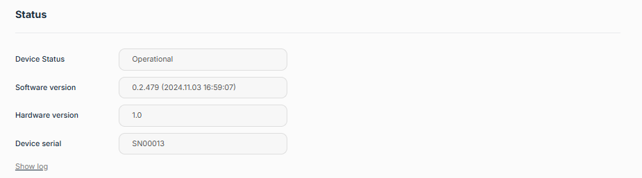 - Software version: The installed device software, can be updated (see “Update” section)
