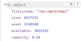 You can install the node node-red-contrib-os via the palette manager to get an overview on the consumed disk memory with the “Drives” node: